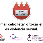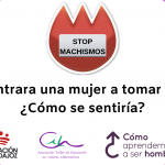 Por ello animamos a quienes regentan uno de estos establecimientos, o a quienes quieran llevárselo al bar de su barrio a descargaros el material y ponedlo. La idea es ponerlo en lugares visibles del establecimiento y que duren lo mayor posible, porque esta cartelería, de momento, no caduca. Podéis hacer una foto del cartel en el bar y subirlo a redes etiquetándonos y añadiendo el hastag #StopMachismos y así le damos difusión.