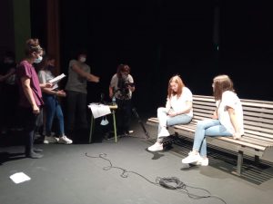 En este impresionante espacio escénico de la localidad, fue donde decidimos llevar a cabo el cortometraje «Out of control» diseñado de forma colaborativa por el grupo del IES Vegas Bajas. Contamos con la dirección artística de Laura Moreira para extraer las dotes interpretativas de las actrices y actor del corto. Fue fundamental contar con el apoyo del equipo técnico del Teatro quienes no sólo facilitaron en todo momento el trabajo sino que nos hicieron sentir como en casa y nos dieron alas para poder sacar toda la «pringue» al momento.